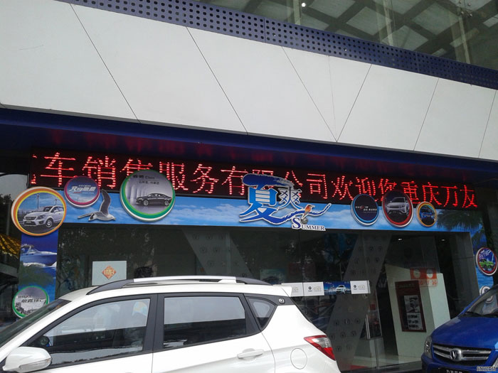 萬友長(zhǎng)安4s店-大溪溝p10半戶外單紅led顯示屏