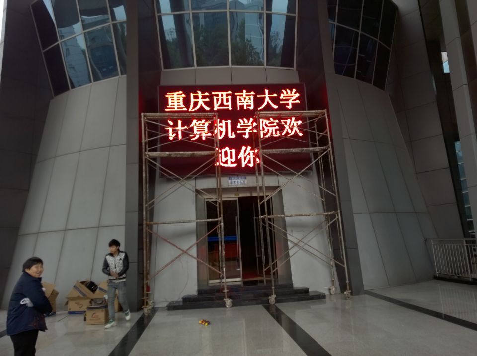 這次西南大學北北校區的P10戶外單紅顯示屏,安于校區學術報告廳門頭之上,P10戶外單紅應用范圍非常廣泛。能讓前來學術報告廳的同學老師們眼前一亮,能簡單明了的看到會議項目。