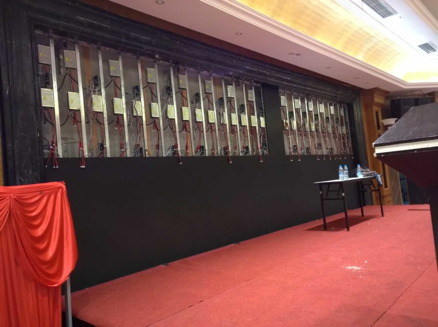 此次P4室內全彩是由彩光科技有限公司全權承制,此主屏有:長:7.424m*高:2.688m=19.96㎡,耳屏有:長:1.28m*高:2.688m=3.44㎡,安裝于重慶市梁平縣名豪酒店內,可以用來主持婚禮,招開記者招待會,舉行宴會等。給大廳錦上添花。